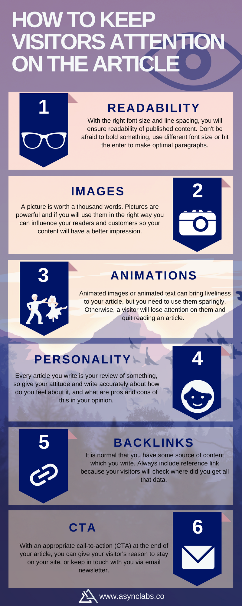 One of the main purposes of writing blogs and articles is to influence the purchasing choice of the people. If the reader finds your article or blog to be trusted and influencing then there are high chances that he/she will become your customer. But the problem with most businesses and their articles is that they can’t grab the complete attention of their readers and thus, fail to turn them into customers. Now there may be several reasons for that. To help you out we have listed some of the best ways to keep your visitor’s attention on the article for long.