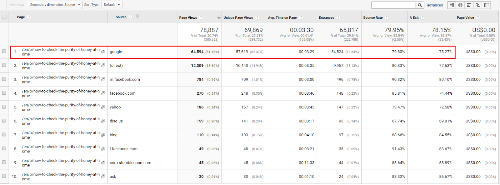 You can see how people find your content. In our example, most visitors come through Google (this is usually the case), but you can also see how long the visitors are staying on your article.