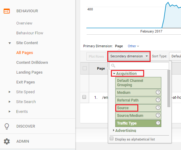 To analyze an article click on Secondary dimension -> Acquisition -> Source.
