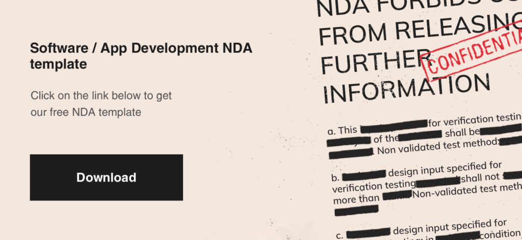 The best way to present what NDA exactly is and what it includes for software/app development is to share our free template with you. We have additionally posted comments to help you successfully fulfill your contract.